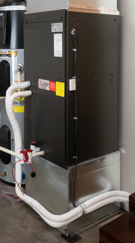 6Cold Climate heat pump air handlers have no (inefficient) back-up resistance heat elements. Instead, these modern-day heat pumps use a variable-speed compressor and fan drives to increase capacity as the temperature drops and to smooth performance. The rated COP for our particular heat pump is 4.2, and the Heating Seasonal Performance Factor (HSPF) is 13.6 Btu/watt, equal to a COP of 3.99. Actual field performance will be less than these numbers.