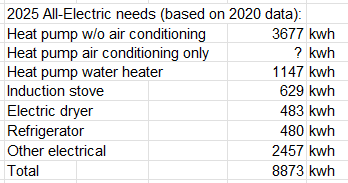 10I ignored the extra electrical load that will occur from air conditioning. Thru 8/20, the summer of 2025 felt more normal for temperature (not rainfall), without significant heat domes, and we hadn’t had that many 85F+ days when the air conditioning is really needed. In any case, it’s shocking to see how little energy was used thru 8/20 this summer, not more than 100 kwh, or the equivalent of $15. I must add, emphatically, that we still open up windows and doors to pull down the interior temperature every night the forecast is for uncomfortably high (>80F) temperatures, a good practice for everyone.