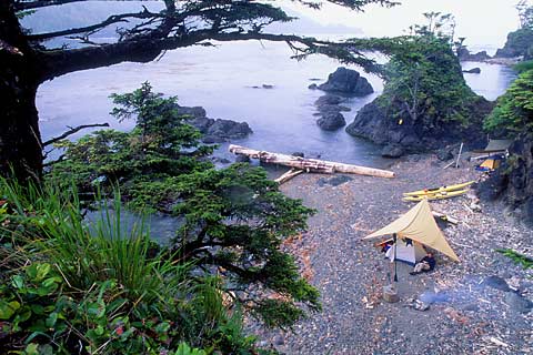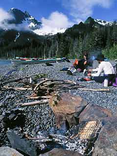 The camps are remote and scenic, and the sea kayak can haul plenty of gear. Ergo — comfort camping and gourmet dining.