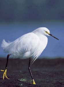 A winter plumage Snowy Egret is still an elegant, showy bird: Elkhorn Slough, CA